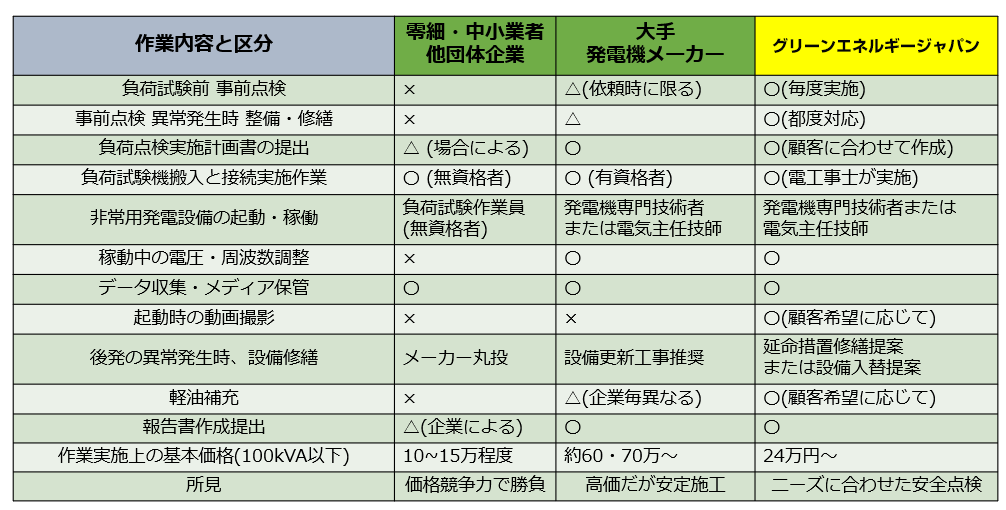 事前調査業務とは、関係法令に基づき適切に点検整備が行われているか。また、各種非常電源保守マニュアルに適合しているかどうかを確認する業務です。この事前調査は、自家発電設備の場合は一般社団法人日本内燃力発電設備協会が発行する自家発電設備専門技術者か一般財団法人電気工事技術講習センターが発行する特種電気工事資格者資格を有する者が行うことで各法令点検では発見することが困難な不具合を専門家の目で実際に確認することを目的としています。