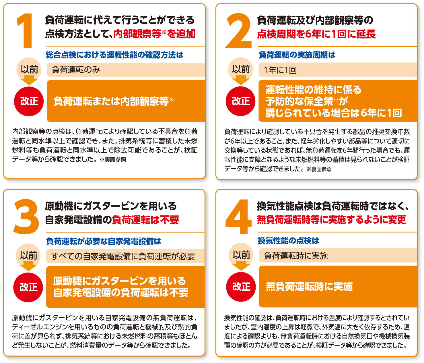 点検方法の追加や点検周期の延長など大きく分けて4つの改正が行われています。